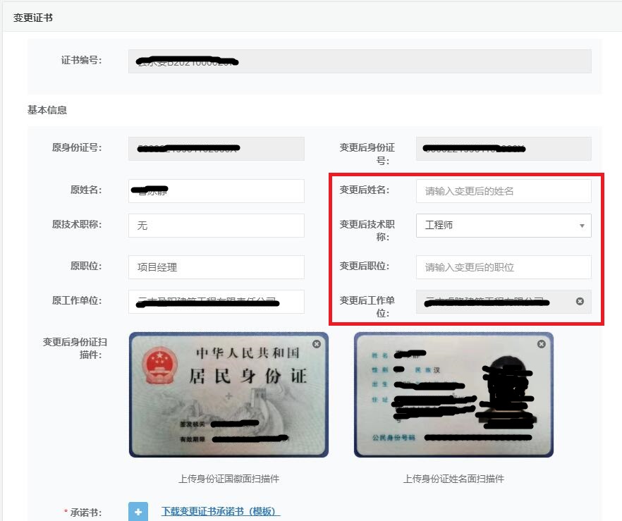 请仔细核对上传的申请表填写的每一项内容与实际变更内容是否一致,特别是如下图所示红框内容:
