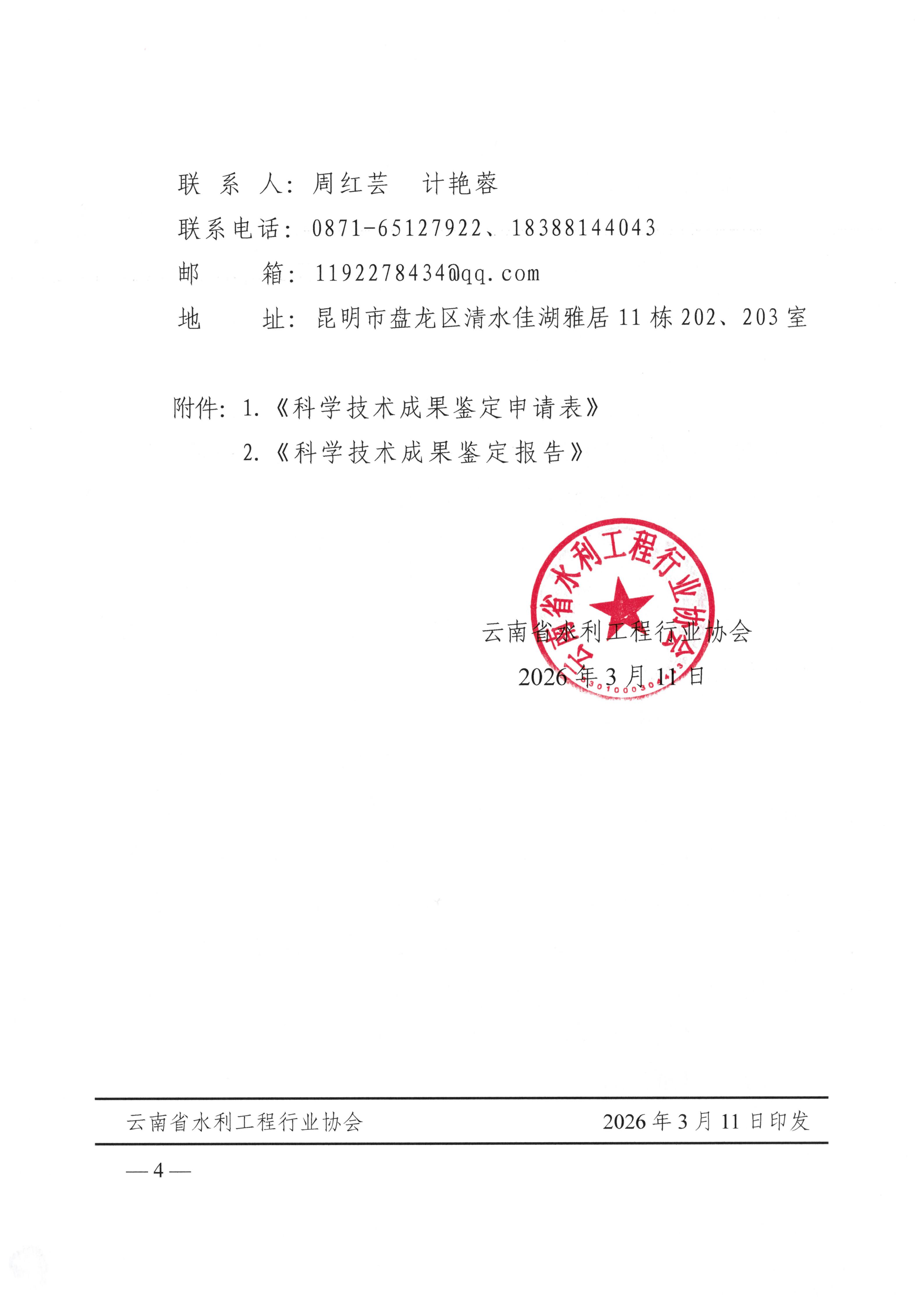 附件:1.《科学技术成果鉴定申请表》