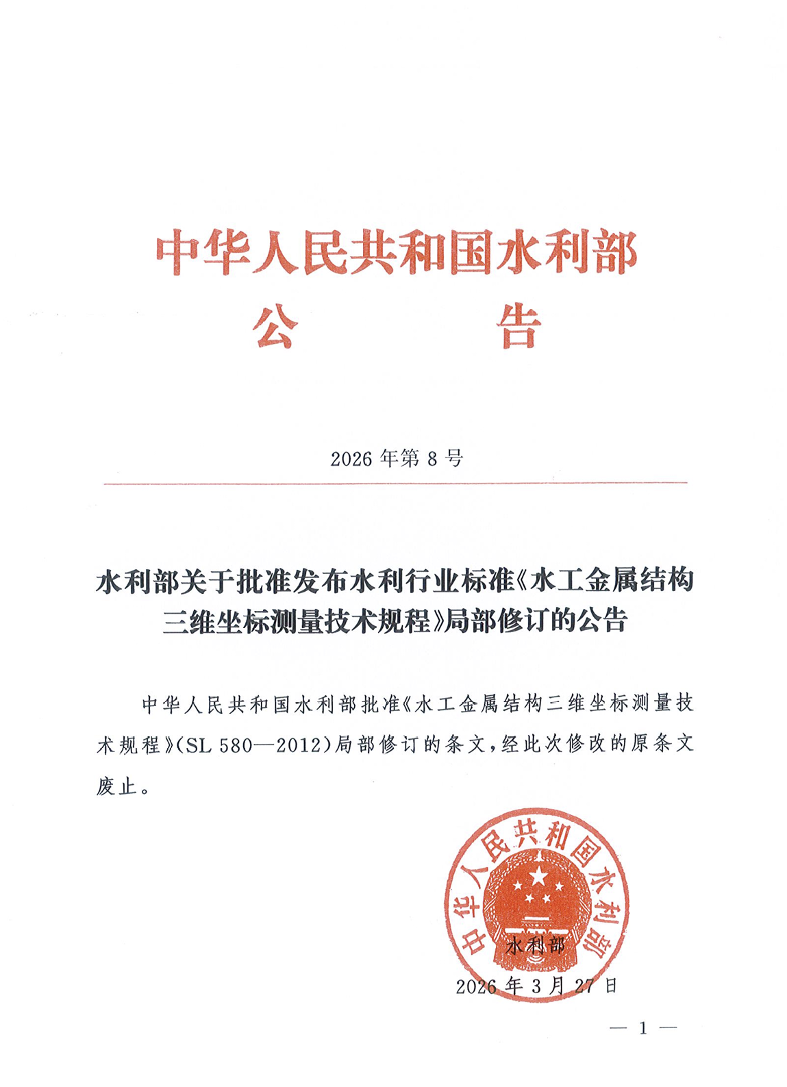 水利部关于批准发布水利行业标准《水工金属结构三维坐标测量技术规程》局部修订的公告